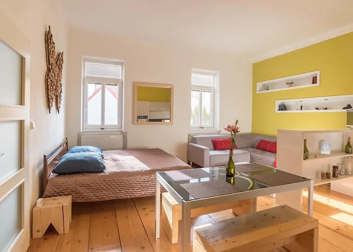 Apartment Sirius A In Center Of Cb. includes self-catering facilities like a fridge, an oven, and kitchenware for guests' convenience. Palackeho namesti bus stop is within 300 metres of the apartment.